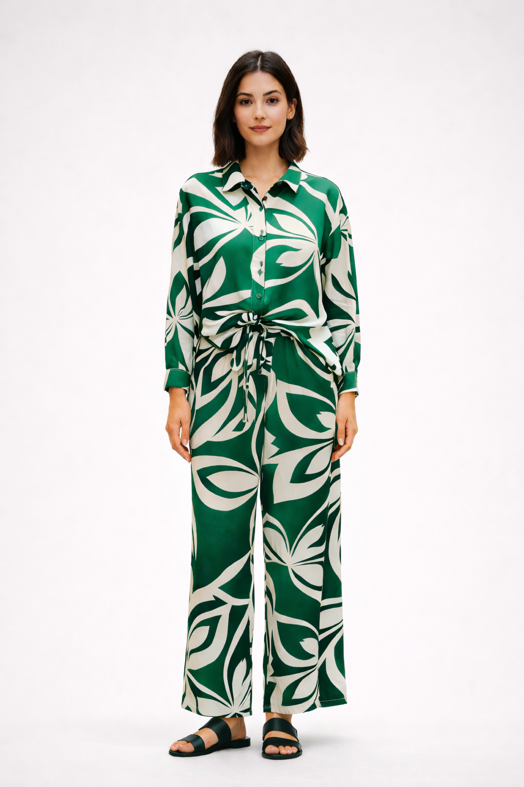 Sa chemise fluide associée à son pantalon large crée une silhouette chic et élancée, idéale pour un look sophistiqué sans effort. Léger et agréable à porter, cet ensemble vous accompagne aussi bien en journée qu’en soirée.